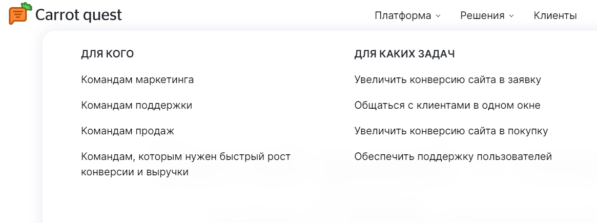 Например, страницы решений для разных типов клиентов или ЛПР: