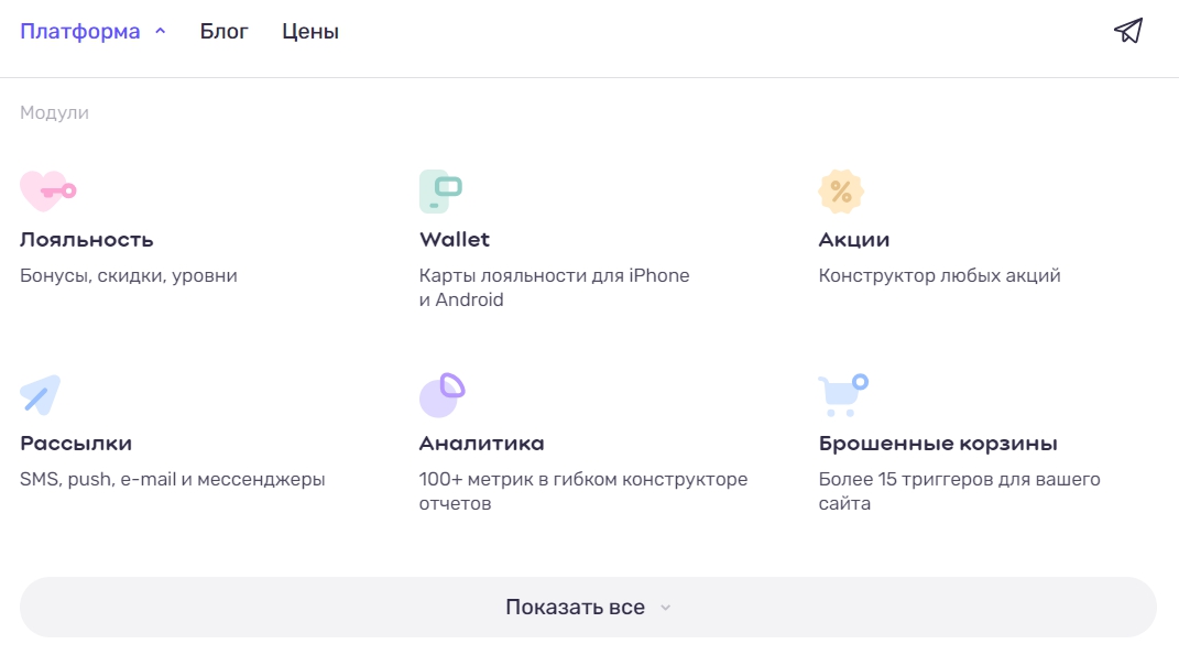 Создайте список страниц основных продуктов, которые необходимы для описания возможностей системы, создания новых точек входа и лидогенерации. Часто бывает проще привлечь внимание к отдельным фичам, чем к платформе в целом.