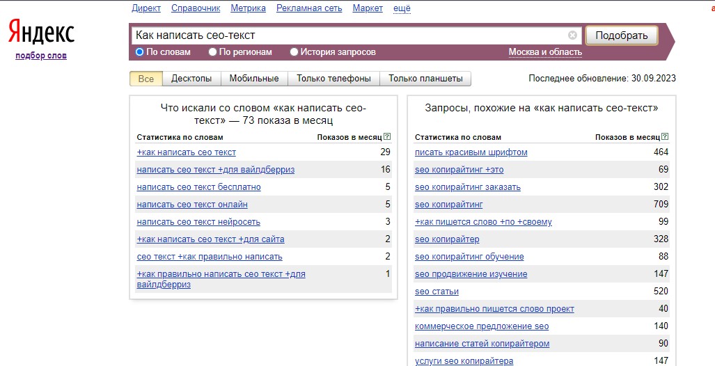 Перед написанием статьи необходимо определить основные ключевые фразы, характерные для тематики текста, и собрать семантическое ядро (СЯ) — пул ключевых слов и словосочетаний. Для этих целей рекомендуется использовать следующие сервисы: