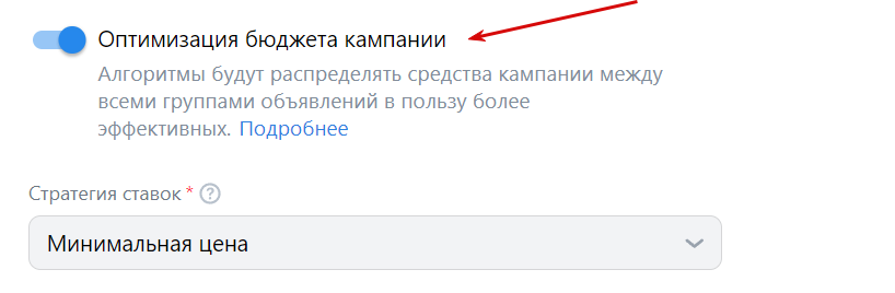 Автоматическую оптимизацию бюджета можно включить сразу на уровне настройки кампании или при настройке групп объявлений. Если включить оптимизацию на уровне кампании, алгоритм будет распределять бюджет между группами объявлений таким образом, чтобы получить максимум конверсий с минимальными затратами. При оптимизации на уровне групп распределение бюджета идет между объявлениями внутри одной группы.