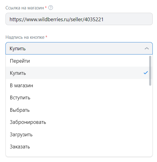 Далее укажите ссылку на рекламируемый магазин и выберите текст для кнопки действия.