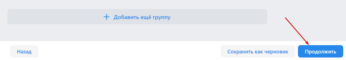 Нажмите «Продолжить», чтобы перейти к настройкам группы объявлений.