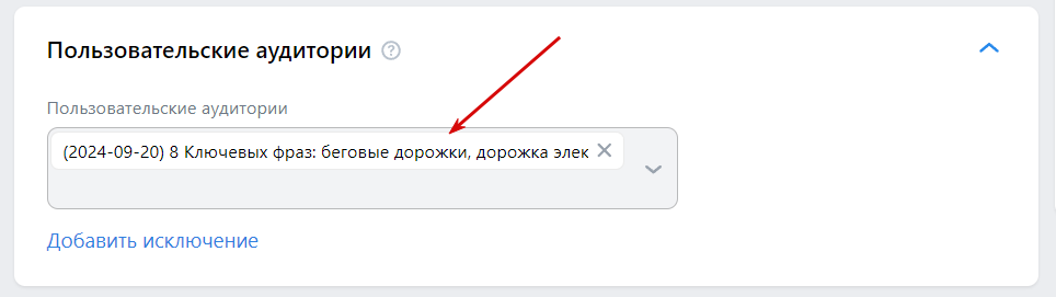 Новая аудитория отобразится в блоке «Пользовательские аудитории» на этой же странице. Вы можете создать несколько отдельных сегментов с разными ключами, а также добавить для них исключения.