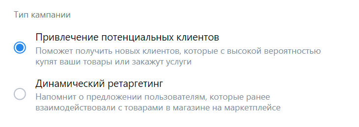 Привлечение новых клиентов — выбирайте этот вариант, если впервые запускаете рекламу магазина на Wildberries в VK. VK Ads соберет статистику кликов по объявлениям для дальнейшего ретаргетинга.