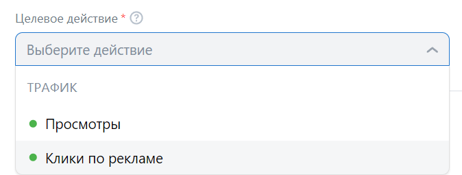 5. Выберите целевое действие, доступны два варианта: за клики и за просмотры.