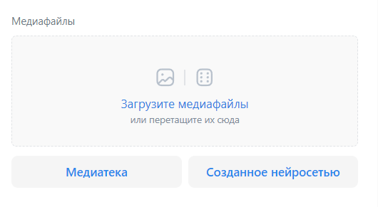 Загрузите свои медиафайлы, если нужно. Картинки можно сгенерировать в нейросети, выбрать из медиатеки или загрузить со своего устройства. По умолчанию система добавит в объявления изображения из карточек товаров на Wildberries.