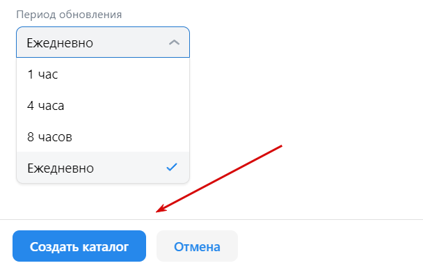 3. Далее выберите период обновления информации и создайте каталог.