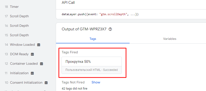8. Сохраняем тег и проверяем его работу через функцию предварительного просмотра: