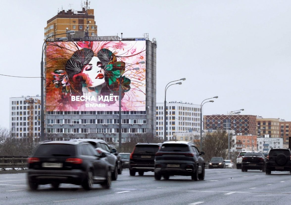 С 3 по 9 марта на центральных улицах городов страны появилась нейро-открытка, которая привлекла внимание миллионов зрителей. На ней изображён анимированный портрет девушки, переливающийся словно в калейдоскопе. Открытку заметили в Москве, Екатеринбурге, Волгограде, Новосибирске, Челябинске, Нижним Новгороде, Перми, Уфе, Самаре, Тюмени и т.д. Площадками для размещения стали крупноформатный цифровые экраны медиахолдинга MAER: медиафасады и суперсайты.