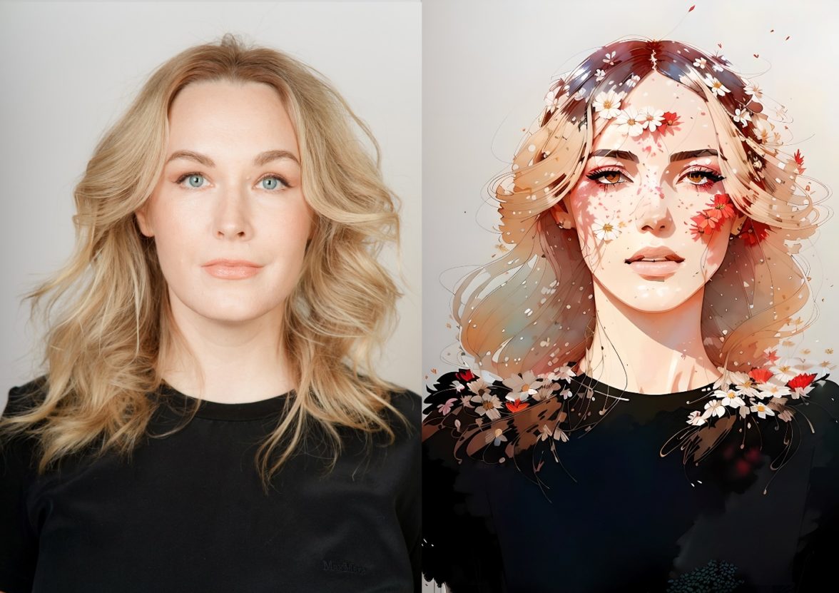 Перед художниками SHUM стояла задача — сгенерировать женский образ максимально корректно, без искажений. Поэтому для нейро-обработки использовались классические портретные кадры с натуральной внешностью: ИИ лучше улавливает черты лица, когда его фокус не сбивают другие заметные детали.