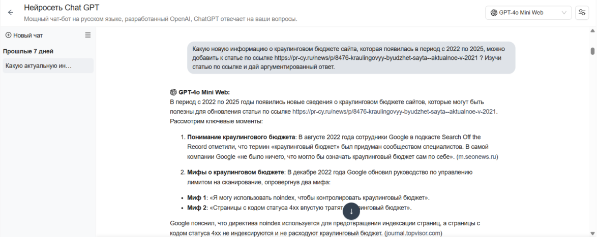 ChatGPT. Продвинутый ИИ-бот, который используется в том числе и для SEO-задач.