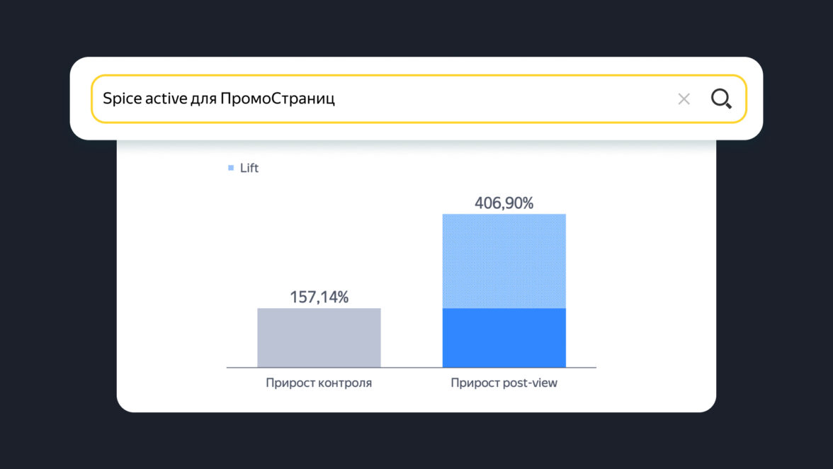 Для оценки этого влияния мы обратились к аналитикам Яндекса, которые подготовили отчет Post-view. Этот отчет однозначно закрыл вопрос об эффективности инструмента, показав, как увеличивался интерес к бренду среди аудитории, взаимодействовавшей с ПромоСтраницами, в сравнении с другими маркетинговыми инструментами, где ПромоСтраницы в цепочке касаний не участвовали.