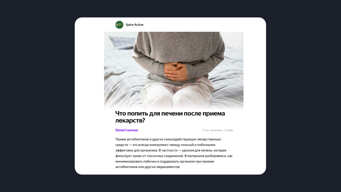 Чтобы компенсировать риски, связанные с новым брендом, во всех статьях мы давали большое научное обоснование эффективности комплексов Spice Active. После такой базы новый бренд не только не отталкивает читателя, но и даёт чёткую связку: Spice Active — это по науке. Словом, растим тех самых адвокатов бренда.