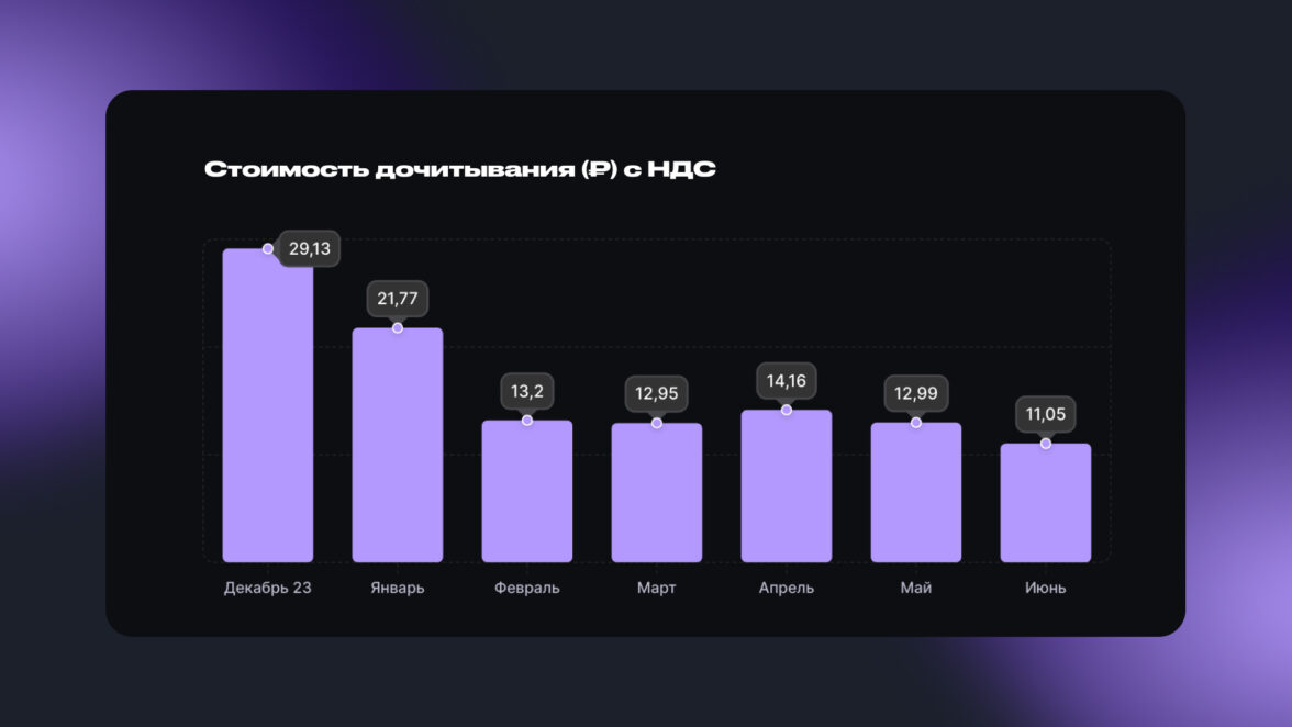 цена дочитывания — оптимизирована с 29,13 рубля до 11,05 рубля с НДС;