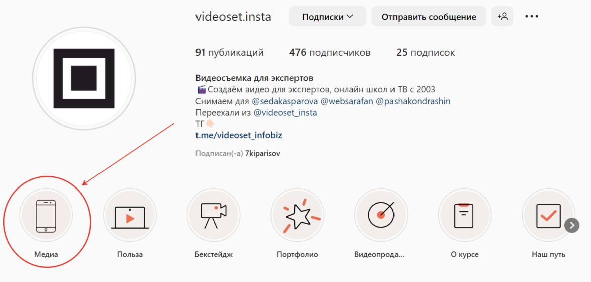 Например, в хайлайтах у меня есть отдельный альбом «Медиа» с анонсами статей. Эти истории раз за разом доказывают аудитории, что я действительно эксперт в теме видеопродакшена и мне можно доверять.