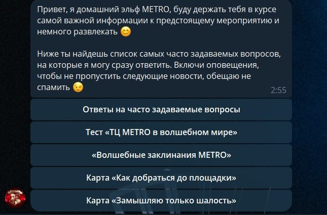 Одним из клиентов заказчика, приведённым с трафика, стала продуктовая сеть Metro, для которой создали новогодний чат-бот в стиле Гарри Поттера