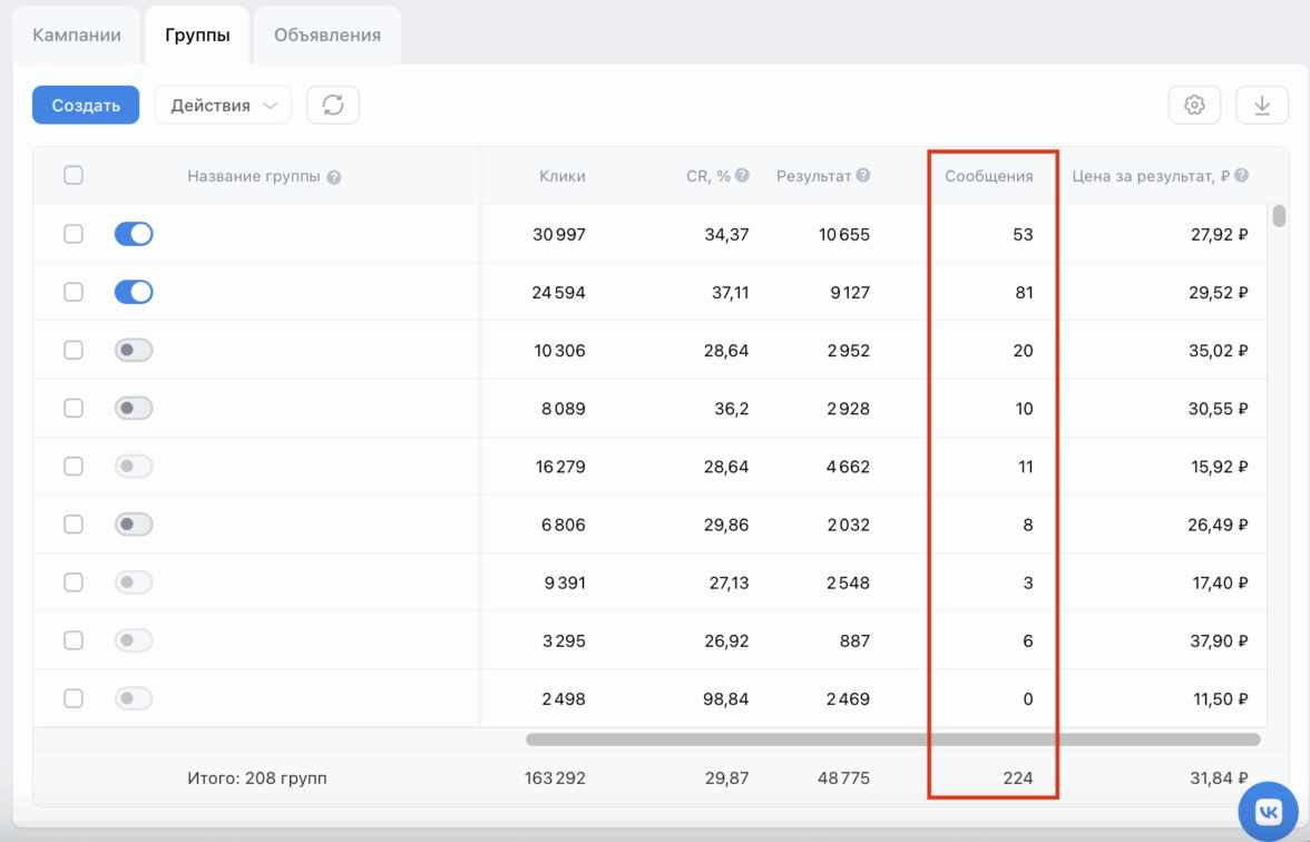 Аудитория, привлеченная через рекламные кампании, оказалась максимально целевой. Это подтверждают не только многочисленные подписки на сообщество, но и значительная активность пользователей в переписке сообщества, что наглядно отражается в данных статистики рекламного кабинета.