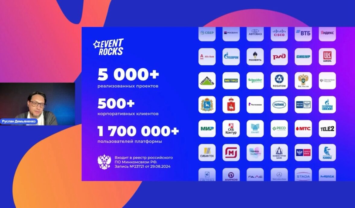 Другой пример — вебинар с Саидом Нигматулиным, где обсуждалось использование искусственного интеллекта при организации ивента. Тема не ограничивается только сферой мероприятий, она остаётся актуальной для широкой аудитории, что позволило привлечь внимание и обеспечить высокий уровень вовлечения.