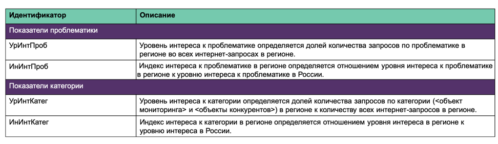 • индексы доступности объектов мониторинга (ценовые запросы),
