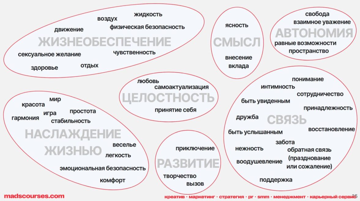 Подумайте, какие потребности вам особенно важны сейчас. Выделите их из списка.