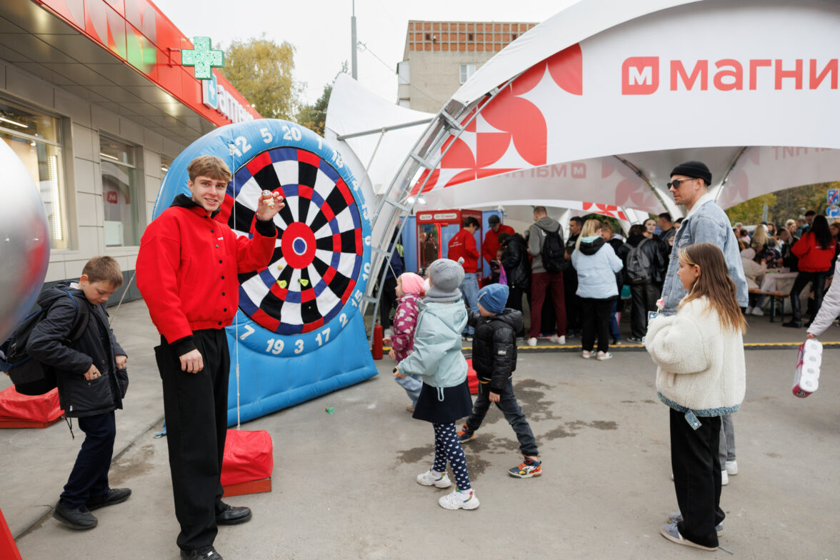 Утром стартовал настоящий праздник: ведущий Ян Кальянов открыл мероприятие и произнес приветственную речь. После этого на площадке прошла дыхательная гимнастика — вовлечение гостей в активный настрой с самого начала. Такой прием помог создать дружелюбную и позитивную атмосферу.День был наполнен выступлениями местных коллективов: «Непросто Танец», «Координация», «Перспектива», «Высота K-pop». Музыкальное сопровождение предоставил диджей Эндорфин / Endorphine. Между выступлениями ведущий проводил интерактивы и рассказывал о сервисах «Магнита», помогая гостям лучше познакомиться с брендом.