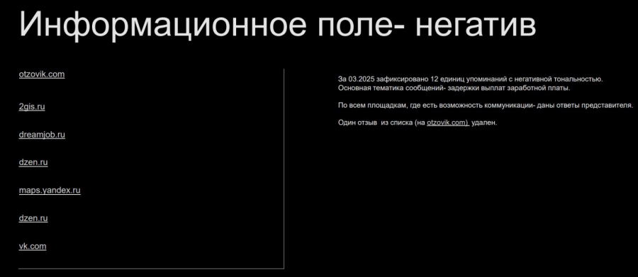 Любые репутационные риски должны быть зафиксированы в отчете (без исключений). Бизнесу важно видеть не только наличие проблемы, но и действия агентства по её устранению.