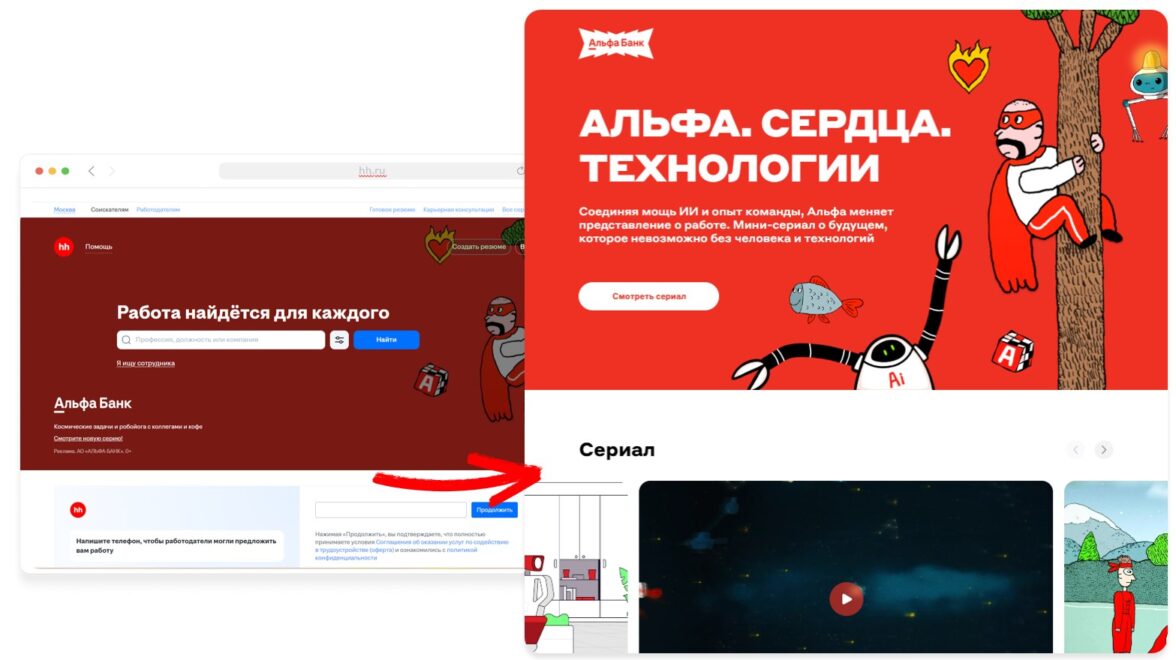 Бренд-Центр hh.ru разрабатывал яркий спецпроект для Альфа-Банка «АЛЬФА. СЕРДЦА. ТЕХНОЛОГИИ», частью которого стал мини-сериал о будущем, которое невозможно без человека и технологий.