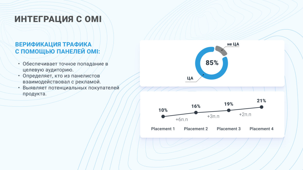 Данные синхронизируются, и из числа пользователей, взаимодействовавших с рекламными материалами, вычленяются панелисты OMI для проведения анкетирования.