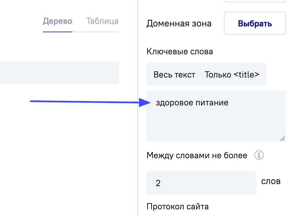 В фильтре поиска введите ключевые слова, которые должны присутствовать на страницах. В одном поиске можно указать до 4 запросов — каждый с новой строки или через запятую.