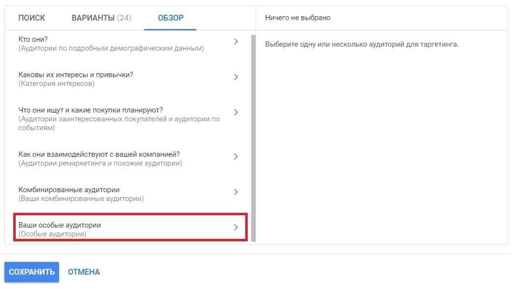 Но в нашем кейсе мы не стали таргетироваться на аудитории по интересам. Нам нужны были люди, готовые приобретать товар, поэтому мы воспользовались особыми аудиториями.