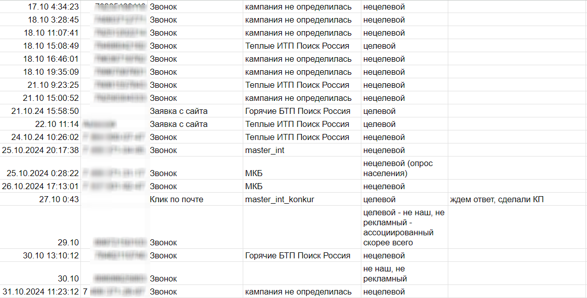 Из скриншота видно, что вначале было получено очень много нецелевых лидов, но позже ситуация стабилизировалась. При этом, с какой кампании шли такие нецелевые лиды, не было понятно.