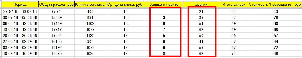 По обратной связи клиента, а она была в 2018 году, звонков он получал больше, чем заявок.