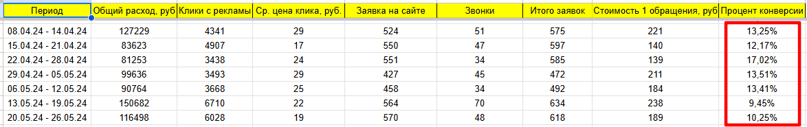 И мы вам ответим, что много раз предлагали клиенту выделить больше бюджета на рекламу, но клиент был против и сообщал нам, что ему хватает лидогенерации и с SEO, а заявки с Яндекс Директ занимают всего 5% от общего количества обращений.