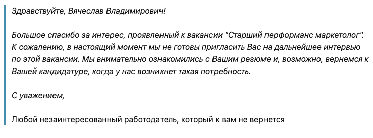 Отбор вакансий — самый трудоемкий этап. Я шерстил Хэдхантер ежедневно. У меня точно были проблемы на этом этапе, потому что отказов было больше ⅔. Попадались ниши, на которые я откликался на шару: инфобиз, недвижка, ремонт. Чаще всего приходил автоотказ.