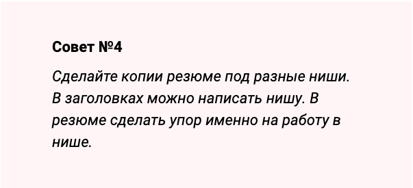 Я сразу понимал, что одним заголовком не отделаюсь, поэтому в каждом резюме расписал в цифрах опыт с нишей из заголовка. Все остальное оставил кратким.