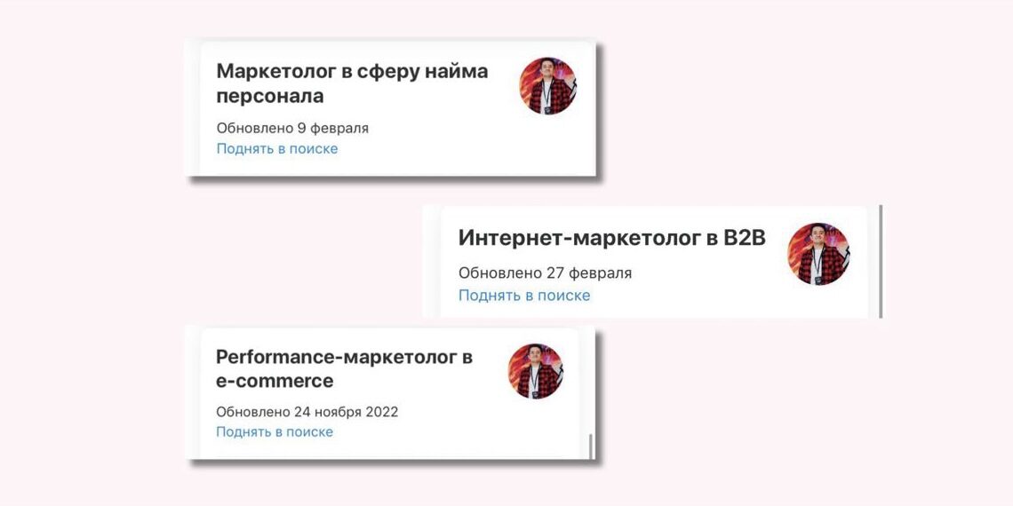 В некоторых у меня был твердый опыт. Поэтому я создал копии резюме с заголовками «маркетолог в <ниша>». Таким образом я добился соответствия между запросом работодателя и тем, что хочу предложить.