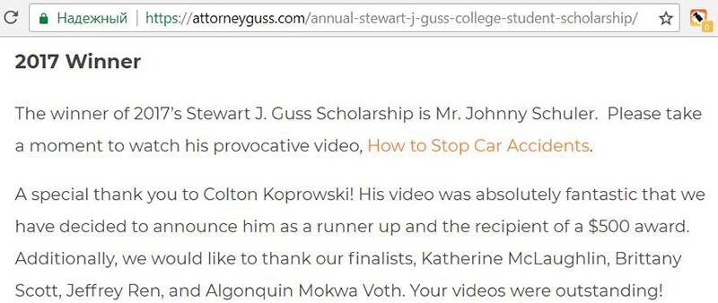 Адвокат и владелец собственного сайта установил специфическую Scholarships: ее получали студенты, пойманные за вождение в нетрезвом виде. Он создал страницу со стипендией на сайте, но не стал обращаться к образовательным ресурсом для размещения ссылок, а пошел к журналистам. Такая необычная стипендия заинтересовала местную прессу, и в электронных изданиях стали выходить материалы.