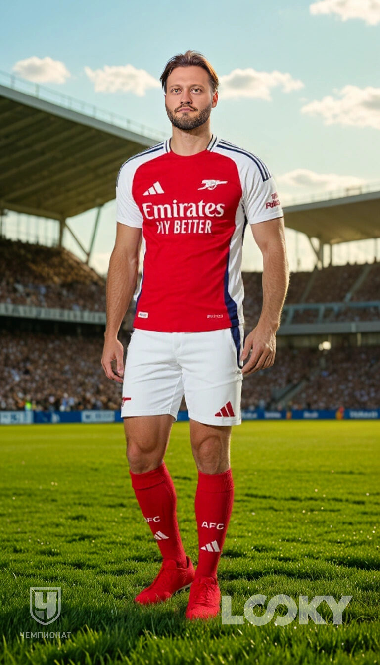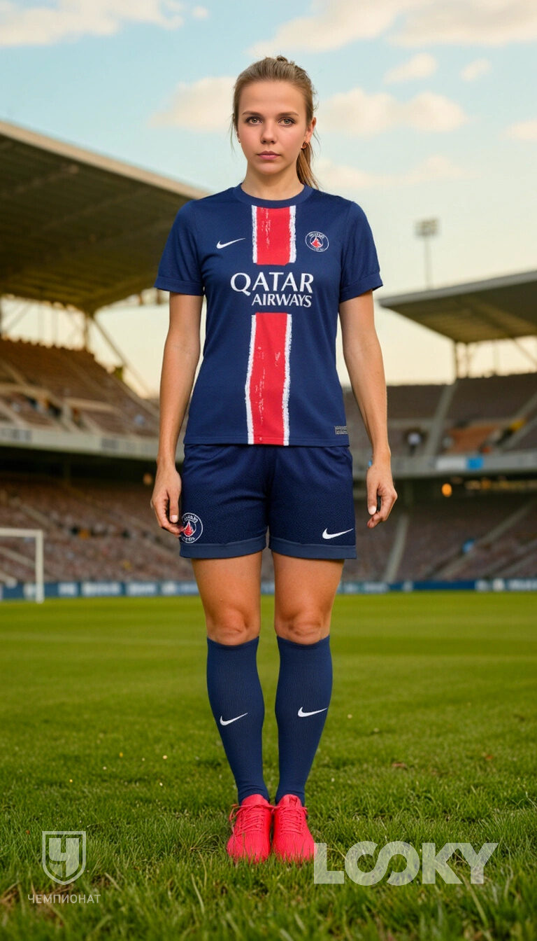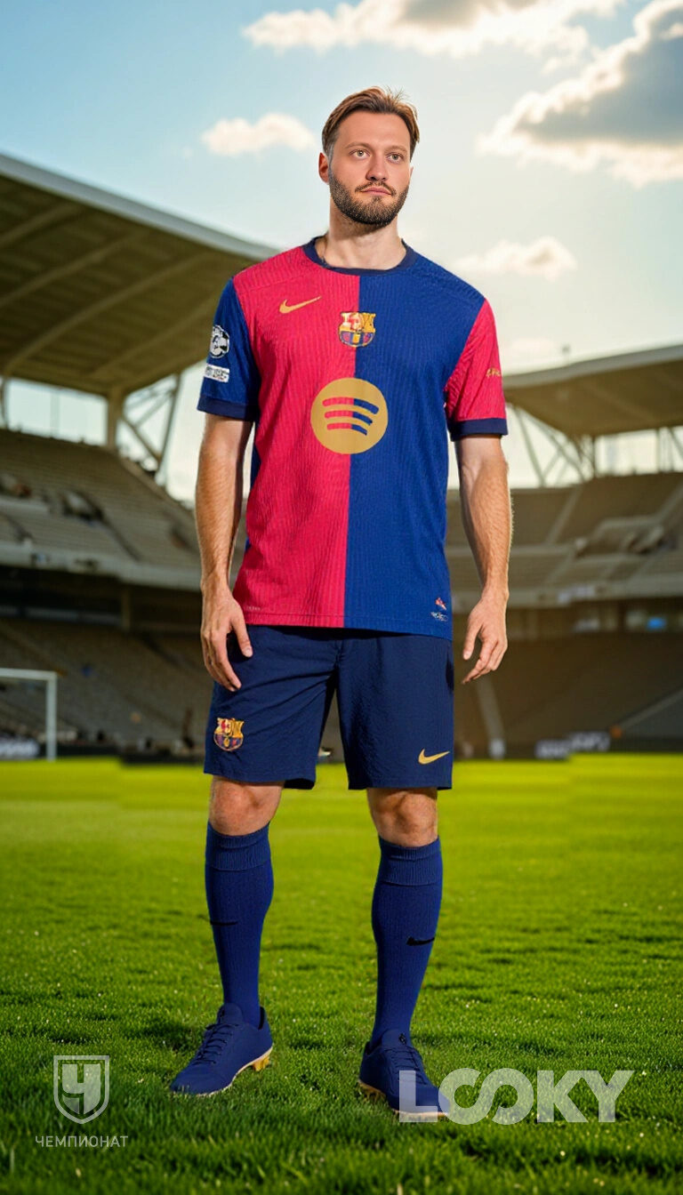 Для обучения AI-модели, созданной специалистами LOOKY, использовались актуальные «домашние» (основные) комплекты клубной формы. При этом удалось качественно перенести даже самые мелкие детали символики и других элементов. Особенность технологии еще и в том, что она не просто обрабатывает фото, но и сохраняет индивидуальные пропорции фигуры.