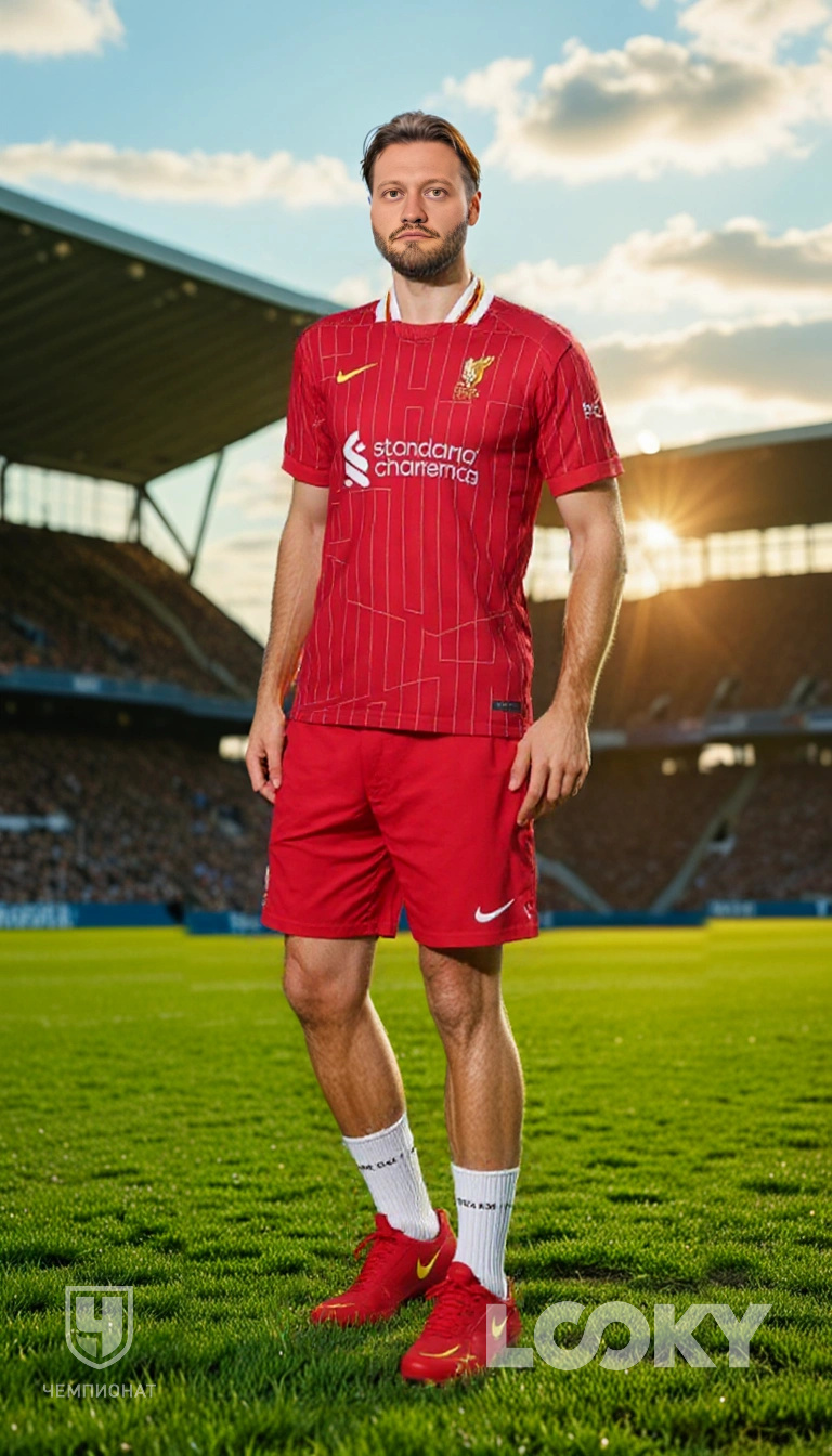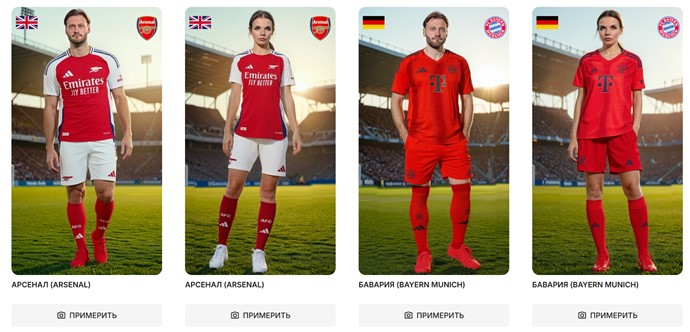 Для обучения AI-модели, созданной специалистами LOOKY, использовались актуальные «домашние» (основные) комплекты клубной формы. При этом удалось качественно перенести даже самые мелкие детали символики и других элементов. Особенность технологии еще и в том, что она не просто обрабатывает фото, но и сохраняет индивидуальные пропорции фигуры.