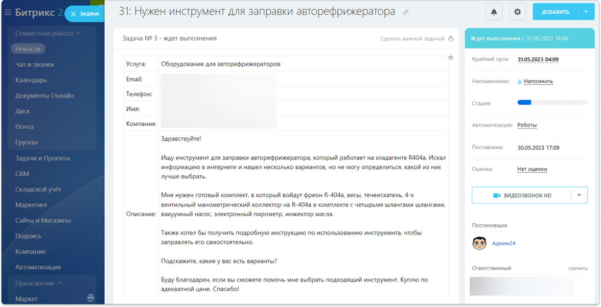 В процессе выбора сервис-деска стало важно, чтобы он обладал интеграцией с Битрикс24. Менеджерам было бы проще обрабатывать заявки в CRM-системе, которую они используют для работы каждый день.