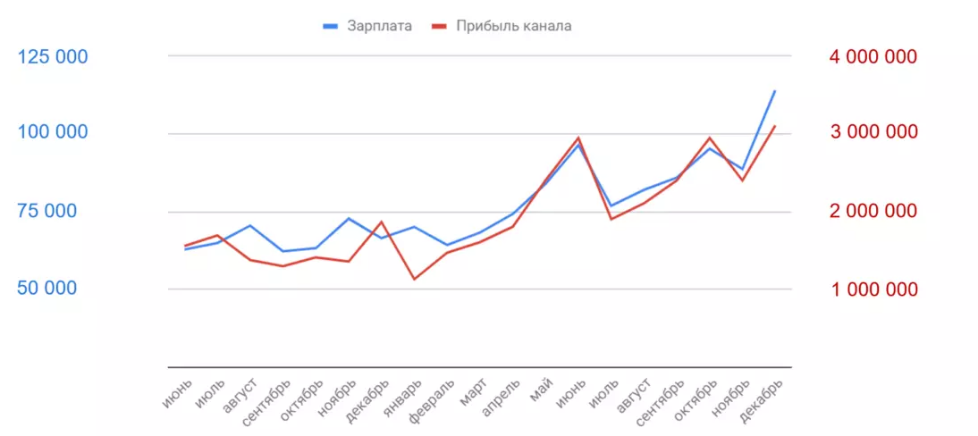 Новая система мотивации помогла увеличить прибыль с рекламного канала на несколько миллионов рублей, а у специалистов выросли зарплаты пропорционально прибыли. Получилась взаимовыгодная сделка, все заработали больше денег.
