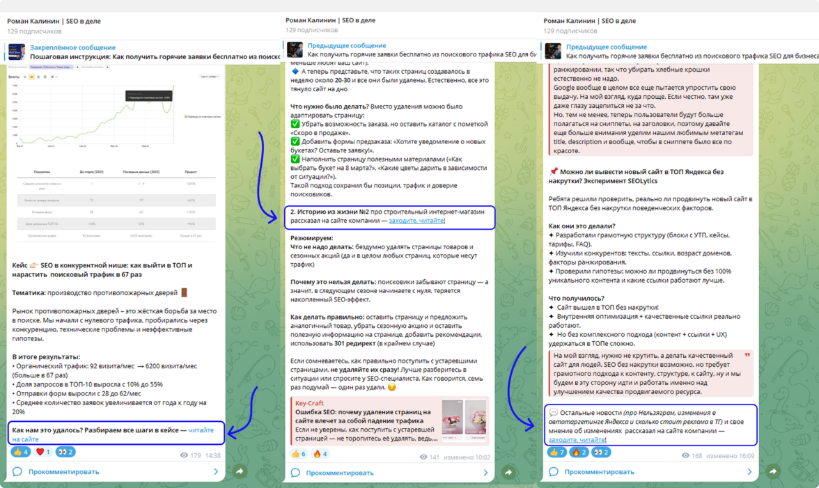 Привлекать ссылочную массу на сайт (если контент пересылают, размещают в Телеграм / на форумах).