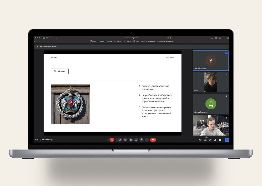 Этот пункт заслуживает отдельного внимания). Хоть и работали в формате дизайн-поддержки, но к защите мы подошли ответственно: подготовили презентацию и созвонились с клиентом.