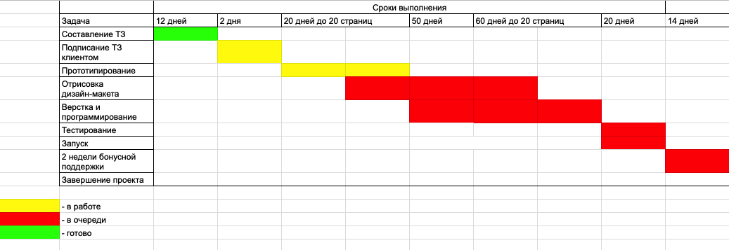 Обратная связь от клиента напрямую влияет на сроки сдачи проекта. Большие перерывы «стирают» детали. Фиксировать и координировать работу над проектом помогает диаграмма Ганта.