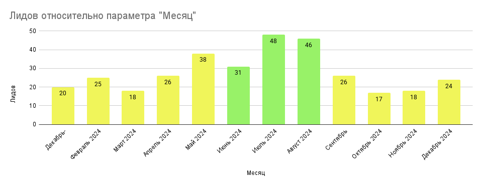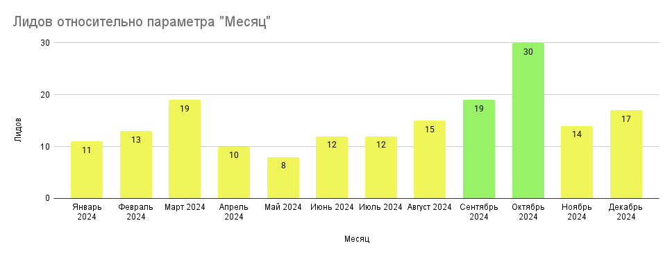 В следующих месяцах продолжили работу по этой стратегии, но столкнулись со снижением числа заявок. Предполагаем, что это связано с ростом средней стоимости ставки по нише и текущего бюджета не хватает для выкупа нужного количества показов. Поэтому одна из следующих целей — увеличение месячного бюджета в проекте и выстраивание новой стратегии.