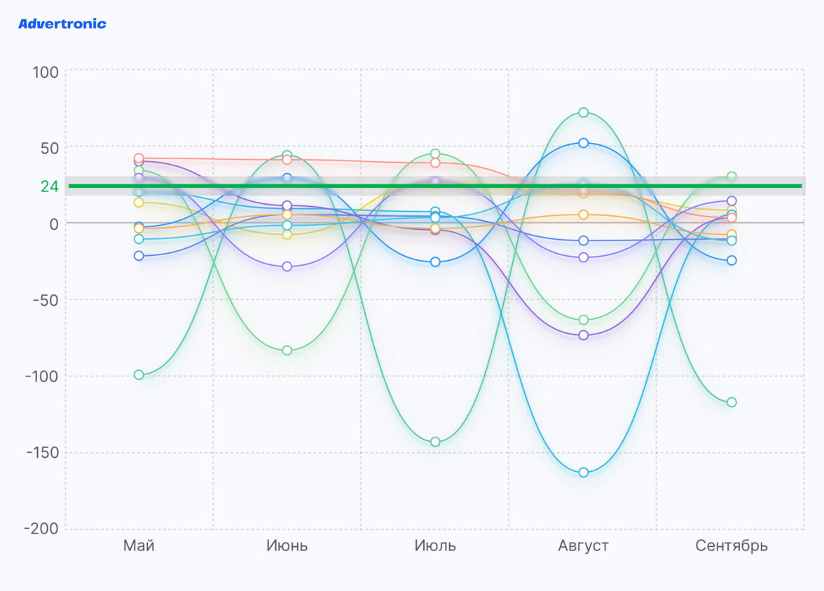 Для плейсментов с высокой волатильностью была проведена помесячная оценка: