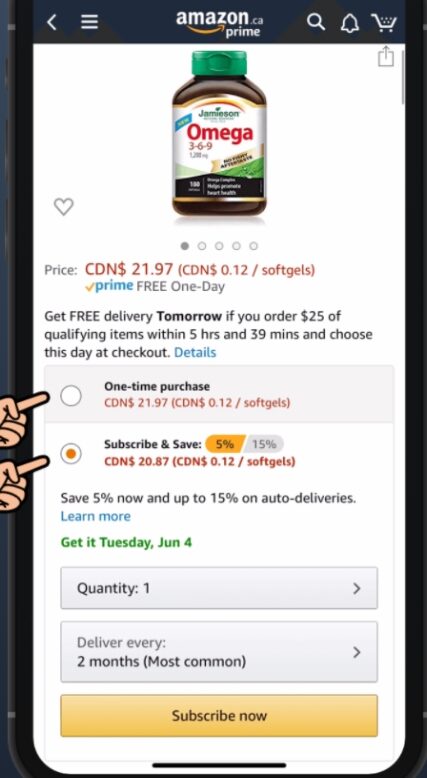 Например, покупку товаров на Amazon по подписке дополнительно стимулируют скидкой: