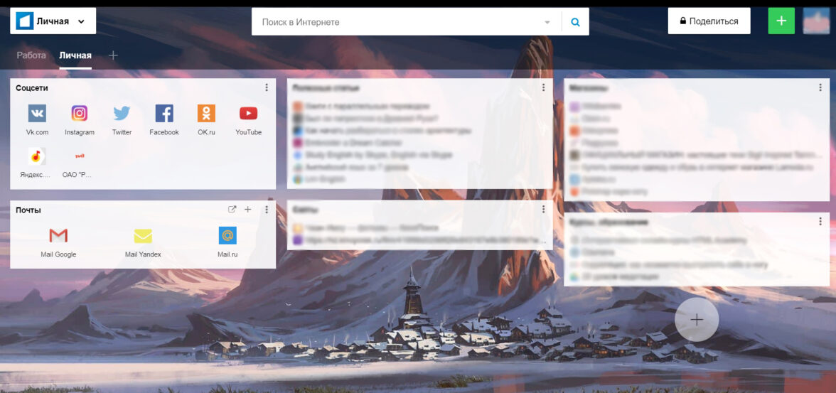 Персонализированная доска с закладками расширения start.me