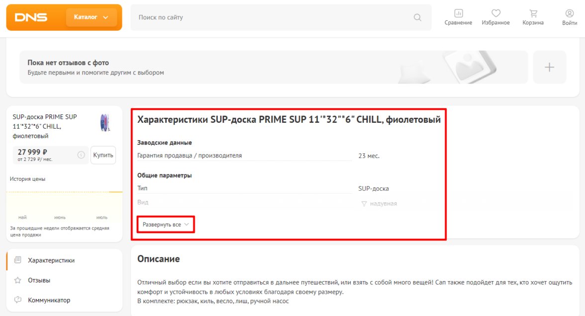 Когда товар сложный — часы, бытовая техника, гаджеты — в его описании может быть много цифр и свойств. Если прописывать технические характеристики абзацами, их будет неудобно читать. Лучше оформить эти сведения в виде списка или таблицы. Если верстка сайта позволяет, характеристики можно убрать в раскрывающийся список или в отдельную вкладку. Большинство маркетплейсов и магазинов электроники делают именно так.