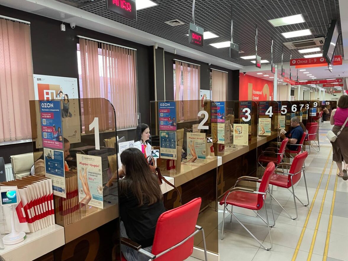 Реклама Ozon в зоне ожидания МФЦ Мои документы
